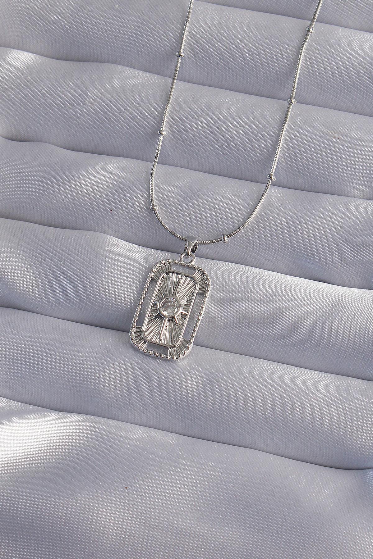 316L Çelik Zincir Gümüş Renk Zirkon Taşlı Tarot Kolye