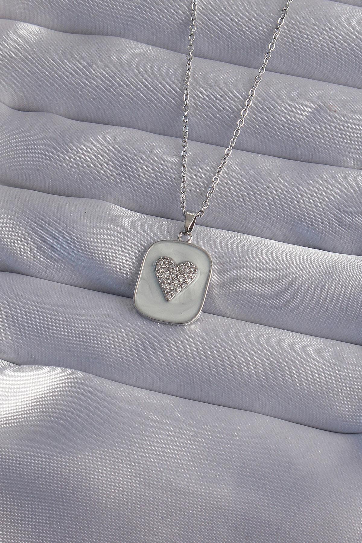 316L Çelik Zincir Mermer Desenli Gümüş Renk Zirkon Taşlı Kalp Model Kolye