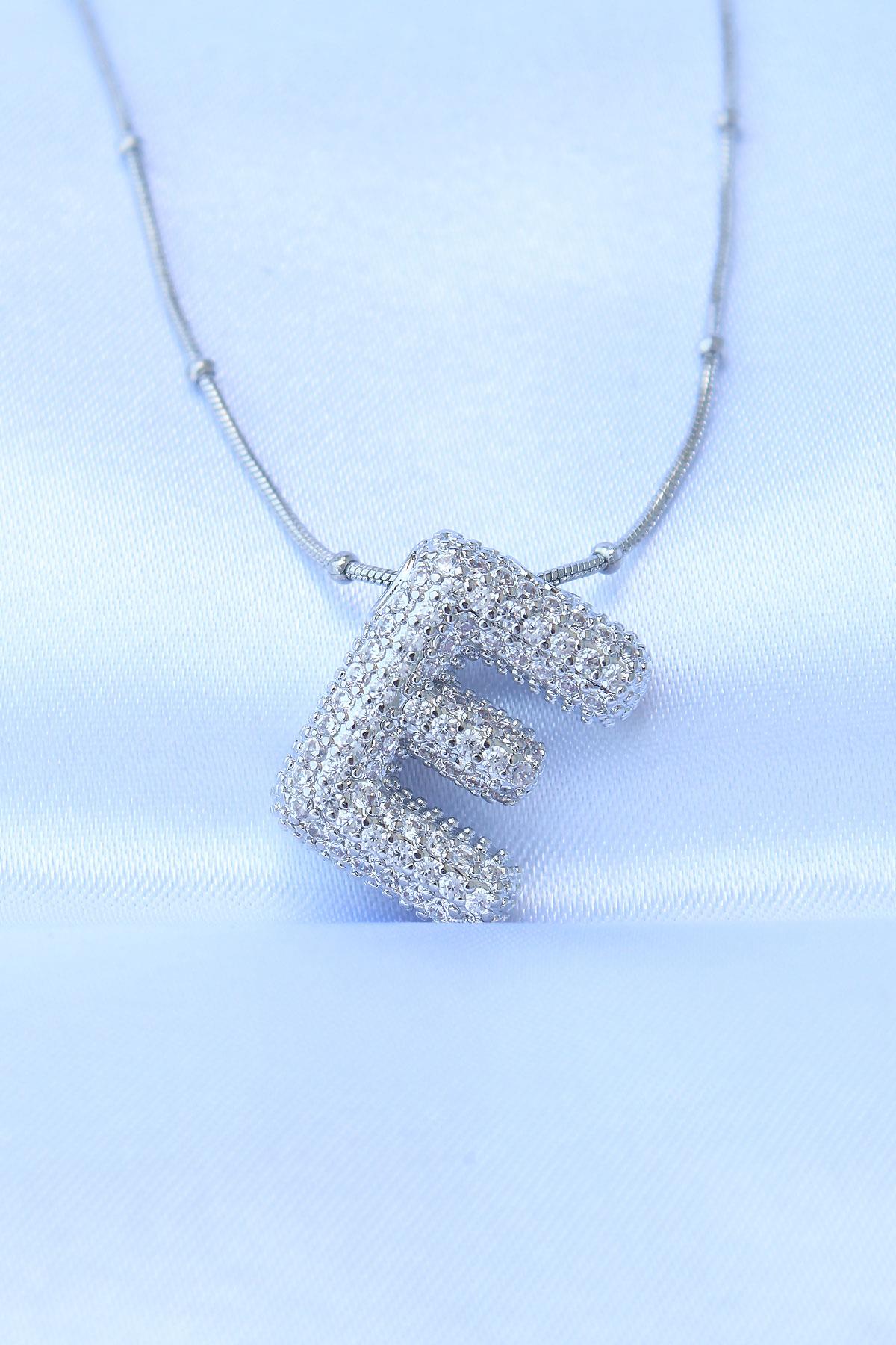 316L Çelik Zincirli Zirkon Taşlı E Harfli Gümüş Renk Bubble Kolye