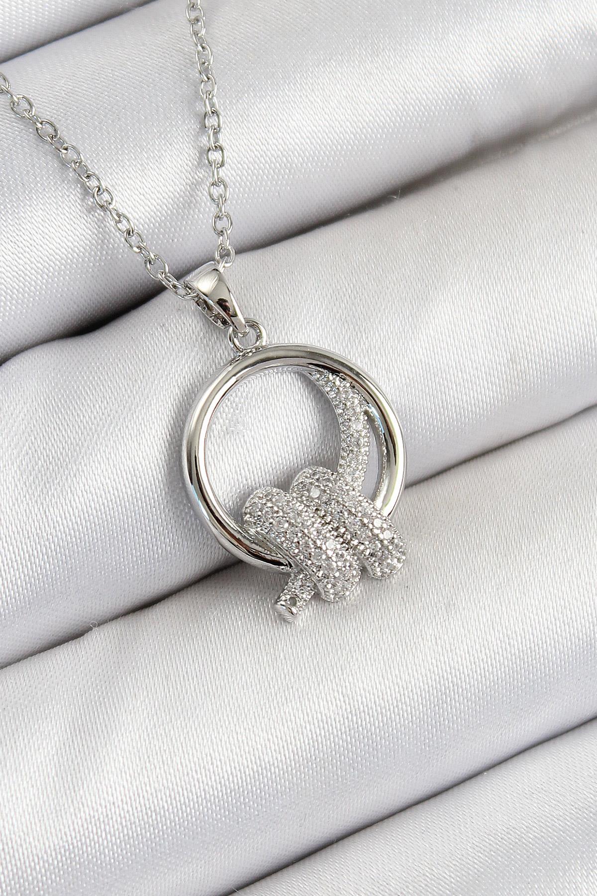 316L Çelik Zirkon Taşlı Düğüm Model Gümüş Renk Kadın Kolye