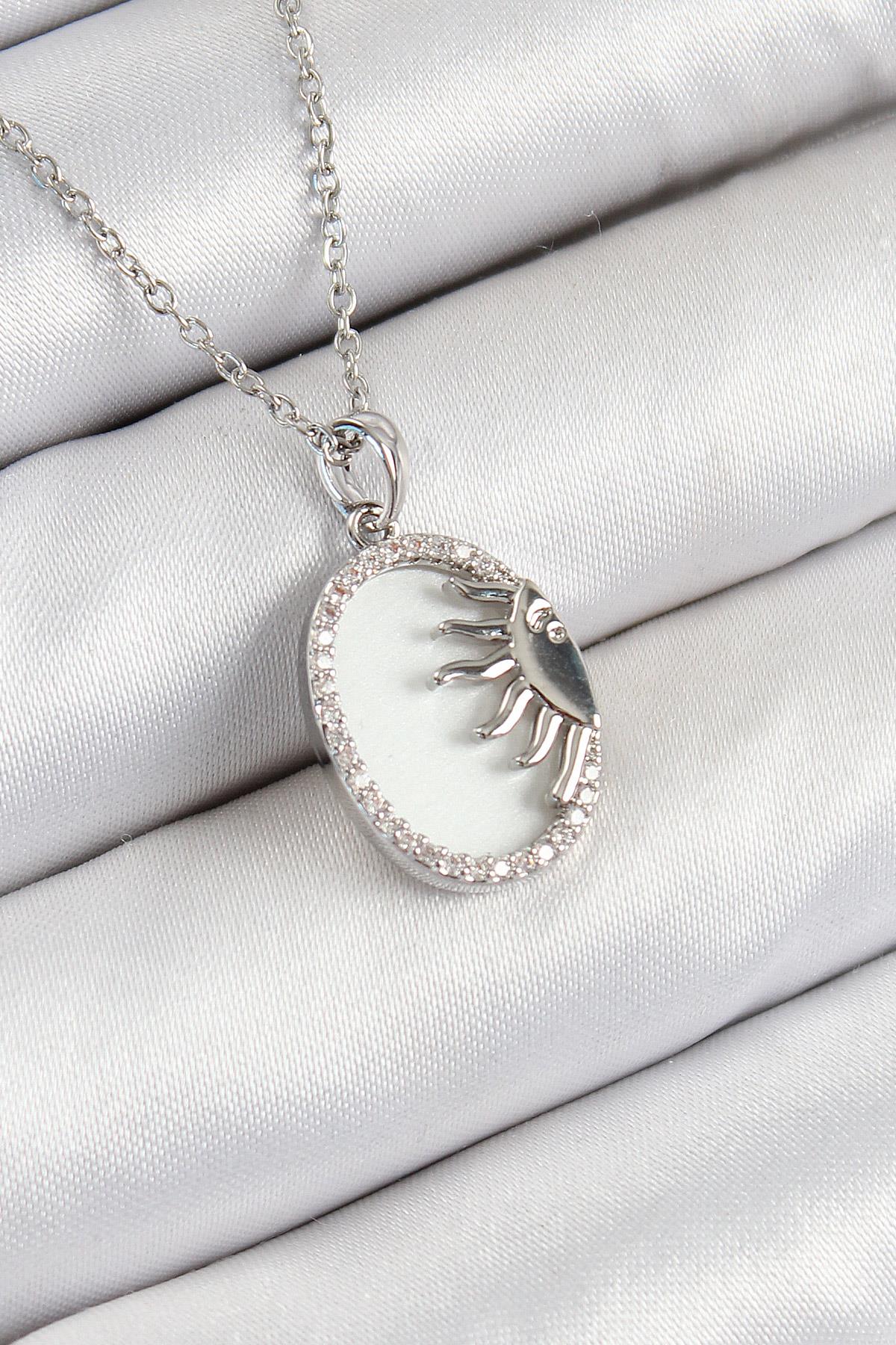 316L Çelik Zirkon Taşlı Yarım Güneş Model Gümüş Renk Kadın Kolye