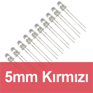 5mm şeffaf kırmızı diyot LED("Light Emitting Diode", Işık Yayan Diyot), elektronik devrelerde sıklıkla kullanılan bir devre elemanıdır. Renk ve boyutuna göre 1.6-4V arasındaki gerilim ile çalışır. Bu gerilim değerlerinin üstünde çalıştırıldığında led diyota düşük dirençli seri direnç bağlanmalıdır.