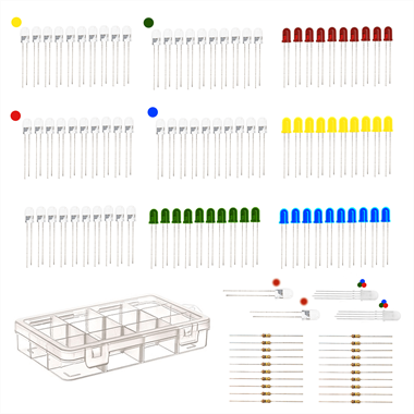 5mm Diyot Led Seti İçerisinde Toplam 90 Parça Her Renk Çeşitinden 5mm LED Mevcuttur + 4 Adet RGB LED Mevcuttur. Bu RGB LED'lerden 2 Tanesi 4 Bacaklı 5mm Şeffaf RGB LED'dir. 2 Tanesi İse 2 Bacaklı 5mm Flaşör LED'dir. Set İçersinde Ekstra Olarak LED Kullanımında En Çok İhtiyacınız Olan 10'ar Tane 330R Ohm ve 220R Ohm Direnç Mevcuttur.