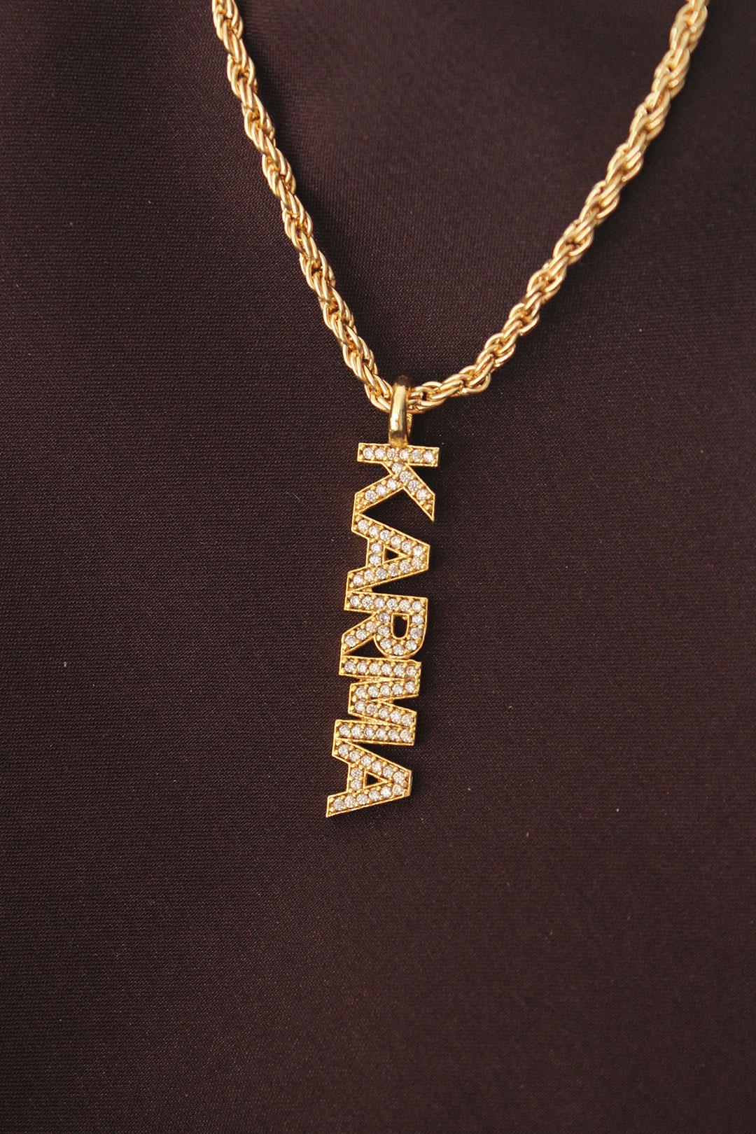 Altın Renk Zirkon Taşlı Karma Yazılı Kolye