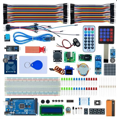 36 Parça 200 Adet Arduino Mega proje geliştirme Seti Set İçeriği· 1 X Arduino Mega 2560 R3 (Klon - CH340 USB Çip - USB Kablo Hediyeli)· 40 X Jumper Kablo Erkek Erkek (30cm)· 1 X Tekli Breadboard (MB-102)· 10 X 5mm Kırmızı LED· 10 X 5mm Yeşil LED· 10 X 5mm Sarı LED· 10 X 5mm Mavi LED· 1 X Buzzer· 1 X 10K Potansiyometre· 1 X SG90 RC Servo Motor 180°· 1 X 28BYJ-48 Redüktörlü Step Motor ve ULN2003A Kartı· 1 X RC522 RFID/NFC Modül Kiti (13.56 MHz Okuyucu, Kart, Anahtarlık)· 40 X Erkek-Dişi Ayrılabilen Jumper Kablo (20cm)· 40 X Jumper Kablo Erkek Erkek (20cm)· 1 X LM35 Analog Sıcaklık Sensörü· 1 X 5mm LDR Işık Sensörü· 10 X 220R 1/4W Direnç· 1 X Ayarlanabilir Hareket Sensörü - PIR (HC-SR501)· 1 X Ultrasonik Mesafe Sensörü (HC-SR04)· 1 X DHT11 Isı ve Nem Sensör Kartı· 1 X Su Seviye Sensörü - Arduino Sıvı Seviye Sensörü· 1 X Ses Algılayıcı Modül· 1 X 4x4 Membran Tuş Takımı Keypad· 1 X 3 Renkli RGB Led Modülü - 5 mm RGB Led· 1 X 74HC595 DIP Entegre· 1 X 14mm 2'li 7 Segment Display (Anot)· 1 X 8x8 Ortak Anot'lu Dot Matrix (60x60mm)· 1 X Ateş Algılayıcı Modül· 1 X 16x2 Karakter LCD Ekran (Display) - Mavi TC1602A-0· 1 X 9V Pil Başlığı - DC Barrel Soket Çıkışlı· 1 X Beta Şeffaf Organizer 12 Bölmeli Kutu 7"· 3 X 6x6mm 8mm Tact Switch· 1 X Powermaster 7262 9V Pil | Super Heavy Duty· 1 X DS1302 RTC Modül - Gerçek Zamanlı Saat Modülü· 1 X KY-023 XY Joystick Modülü - Arduino 2 Eksenli PS2 Joystick Modül· 1 X 5V 1 Kanal Röle Kartı - 1 Kanal Tek Kontak Tekli Röle