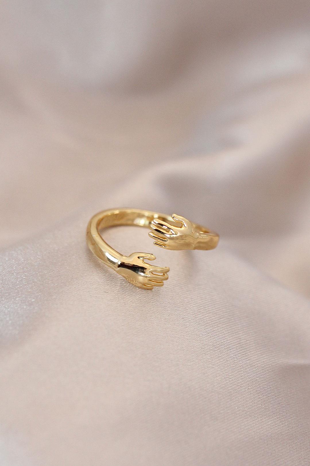 Ayarlamalı Altın Renk Metal Sarılan Eller Model Yüzük
