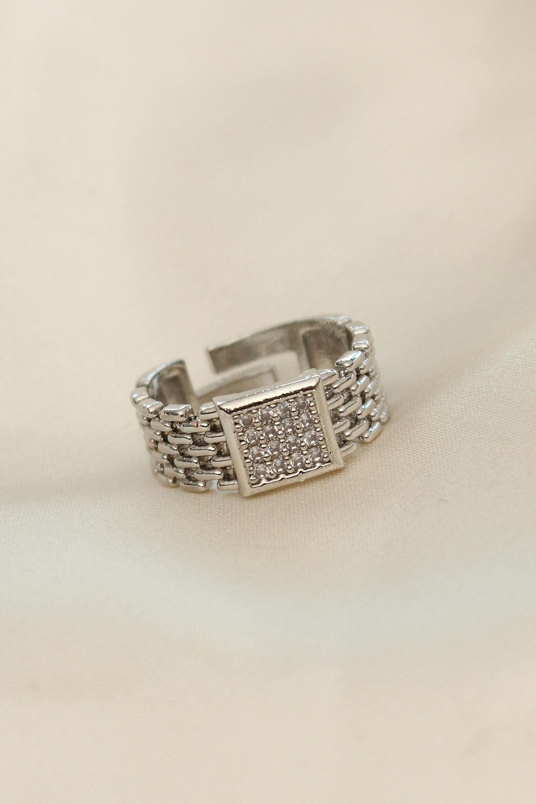 Ayarlamalı Gümüş Renk Kare Zirkon Taşlı Yüzük