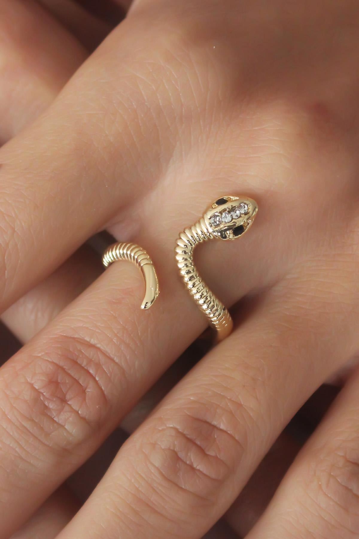 Ayarlanabilir Gold Renk Yılan Kadın Yüzük