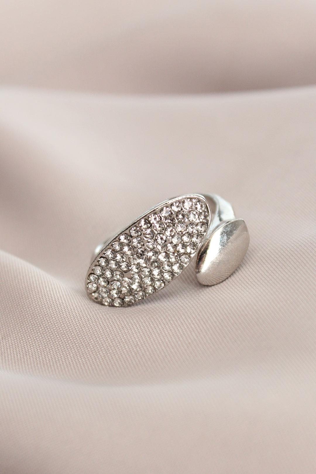 Ayarlanabilir Gümüş Renk Zirkon Taşlı Virgül Yüzük