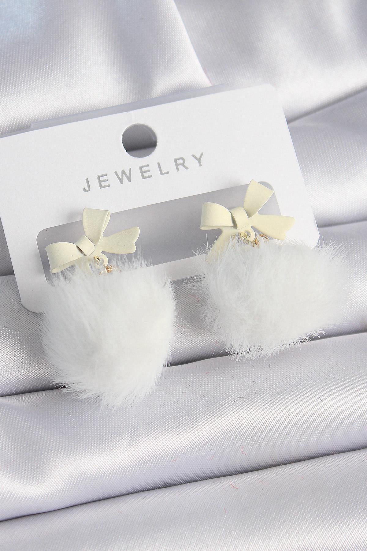 Beyaz Renk Kurdele Tüylü Ponpon Model Kadın Küpe