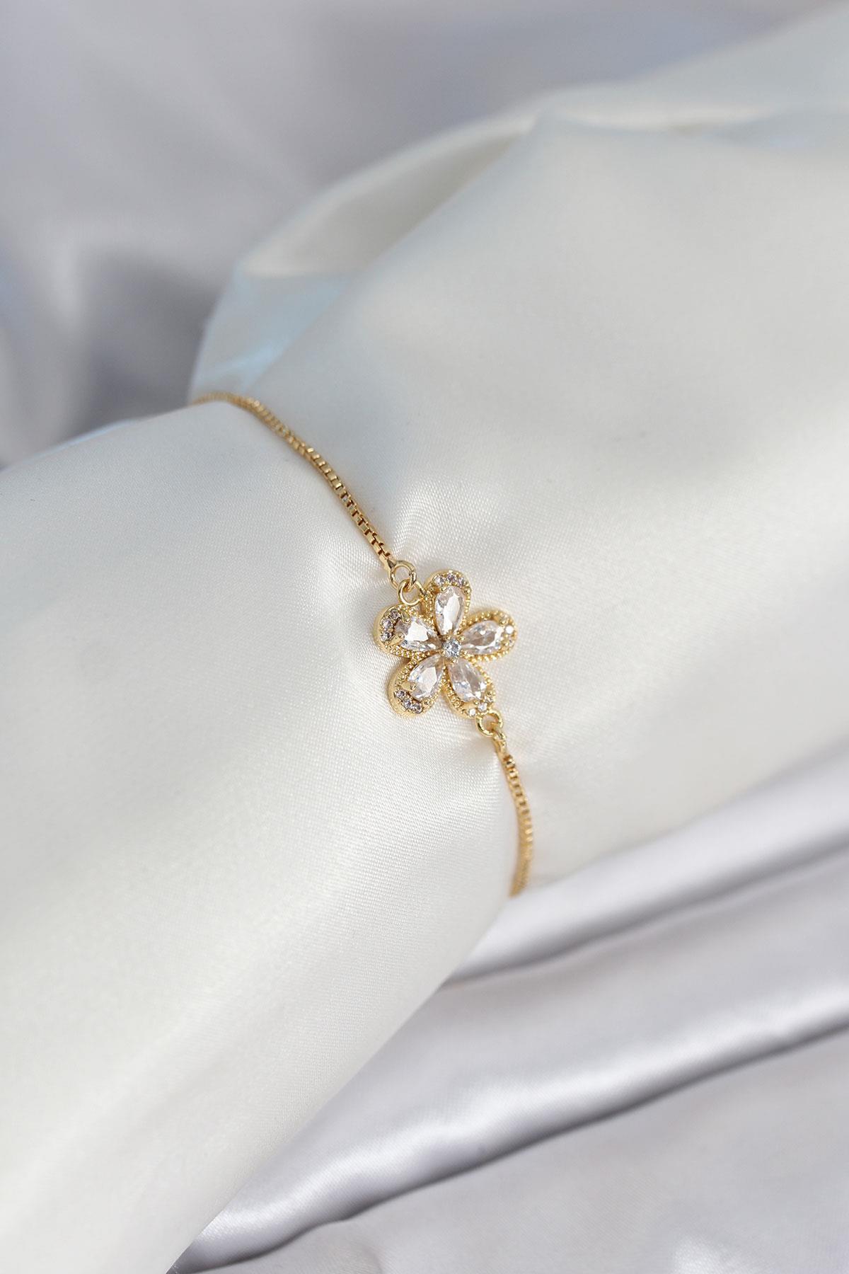 Çiçek Model Asansörlü Gold Renk Kadın Bileklik
