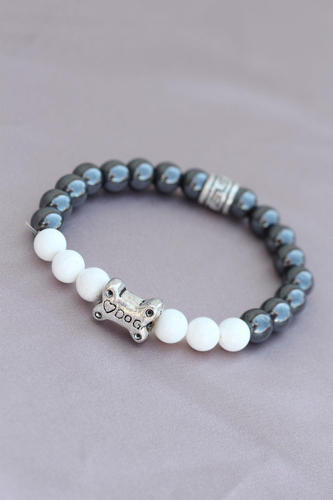 DOG Yazılı Beyaz Füme Doğal Taş Tasarımlı Erkek Bileklik