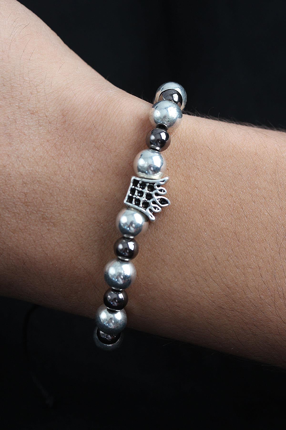 Doğal Taş Kral Tacı Model Gümüş Ve Füme Renk Asansörlü Erkek Bileklik