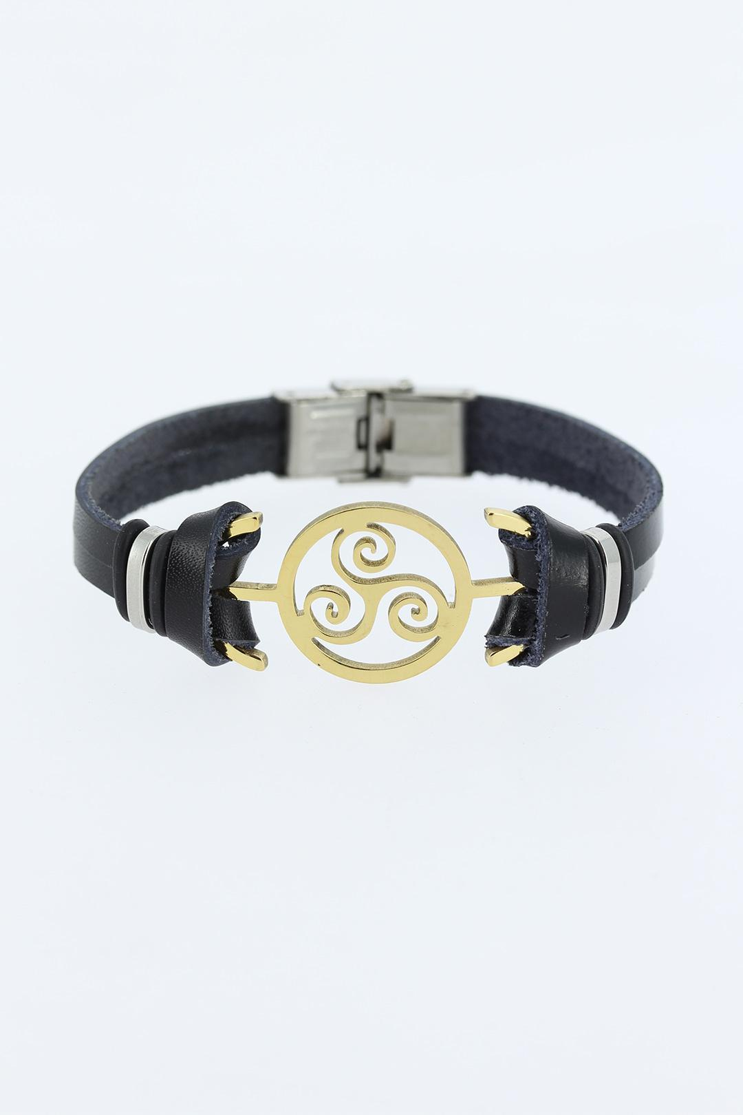 Gold Renk Metal Aksesuarlı Siyah Renk Deri Erkek Bileklik