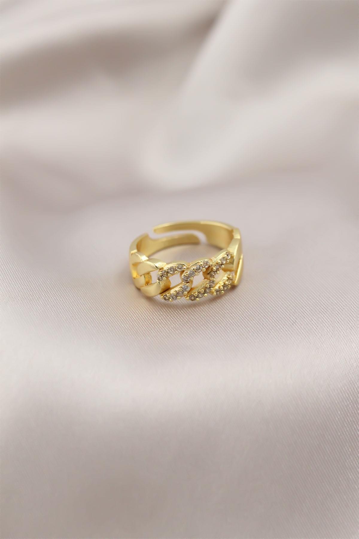 Gold Renk Metal Zincir Model Taşlı Kadın Yüzük
