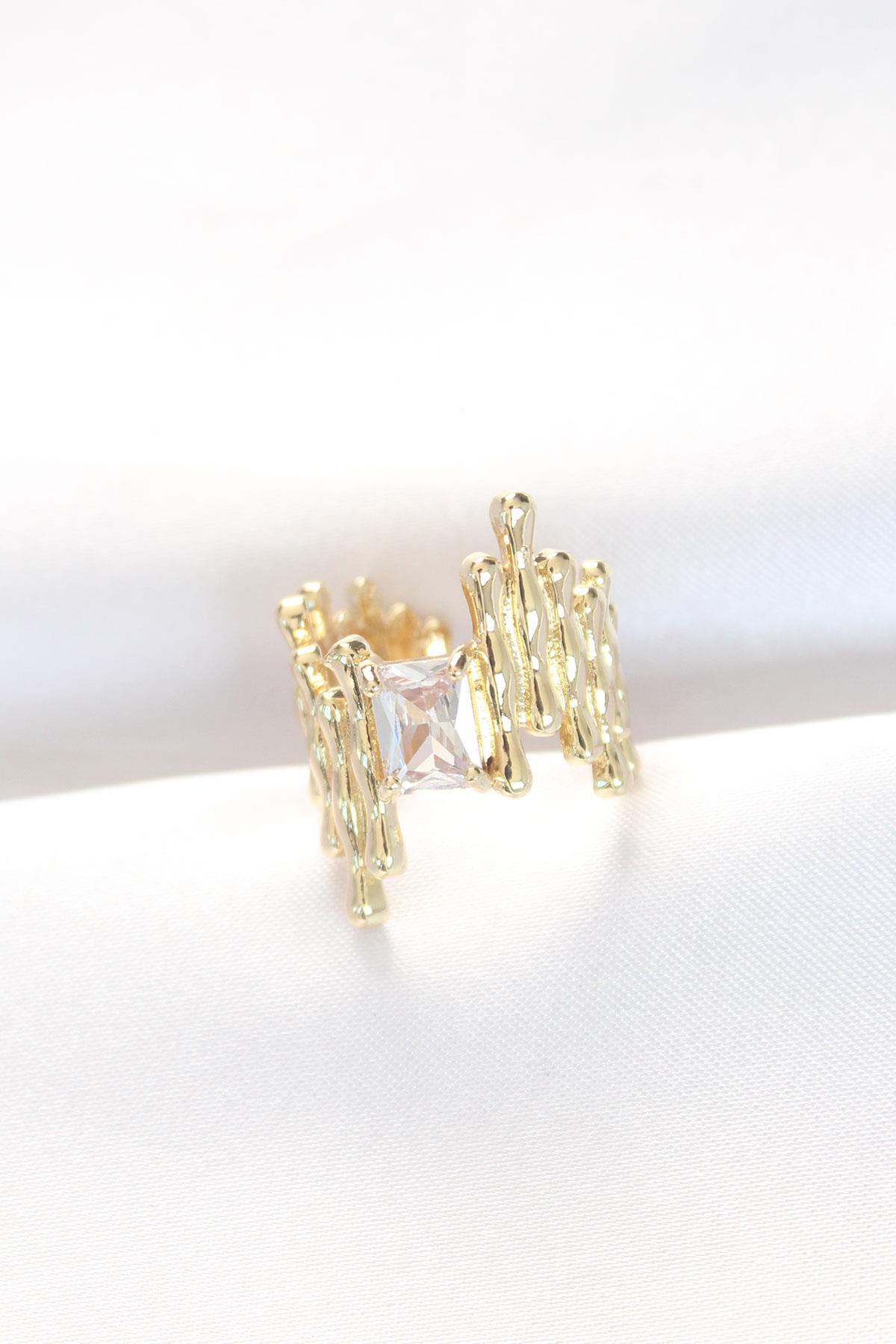 Gold Renk Tırtıklı Kalın Baget Taş Tasarım Ayarlanabilir Yüzük