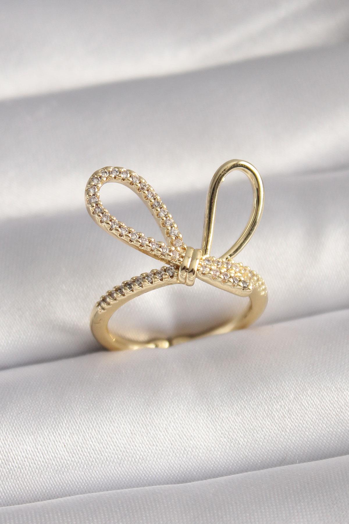 Gold Renk Zirkon Taşlı Düğüm Model Kadın Yüzük