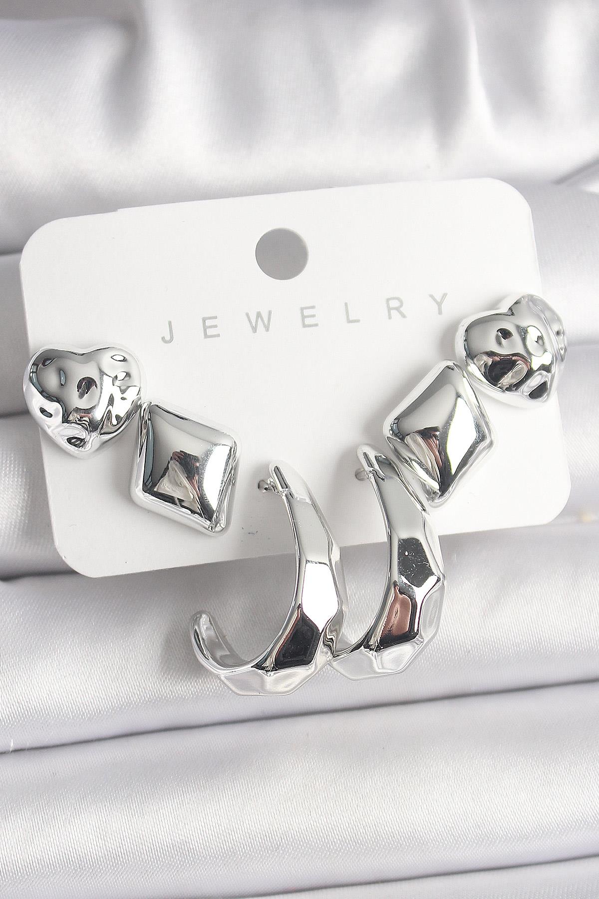 Gümüş Renk Kalp Halka Figür CCB Plastik Kadın Küpe Seti