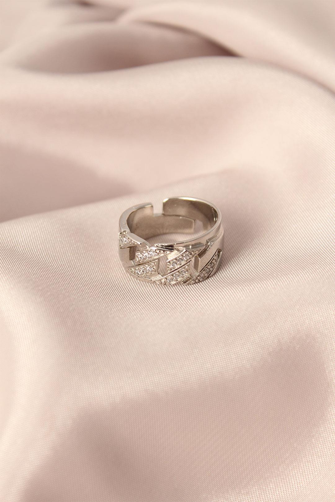 Gümüş Renk Metal Zirkon Taşlı Ayarlanabilir Kadın Yüzük