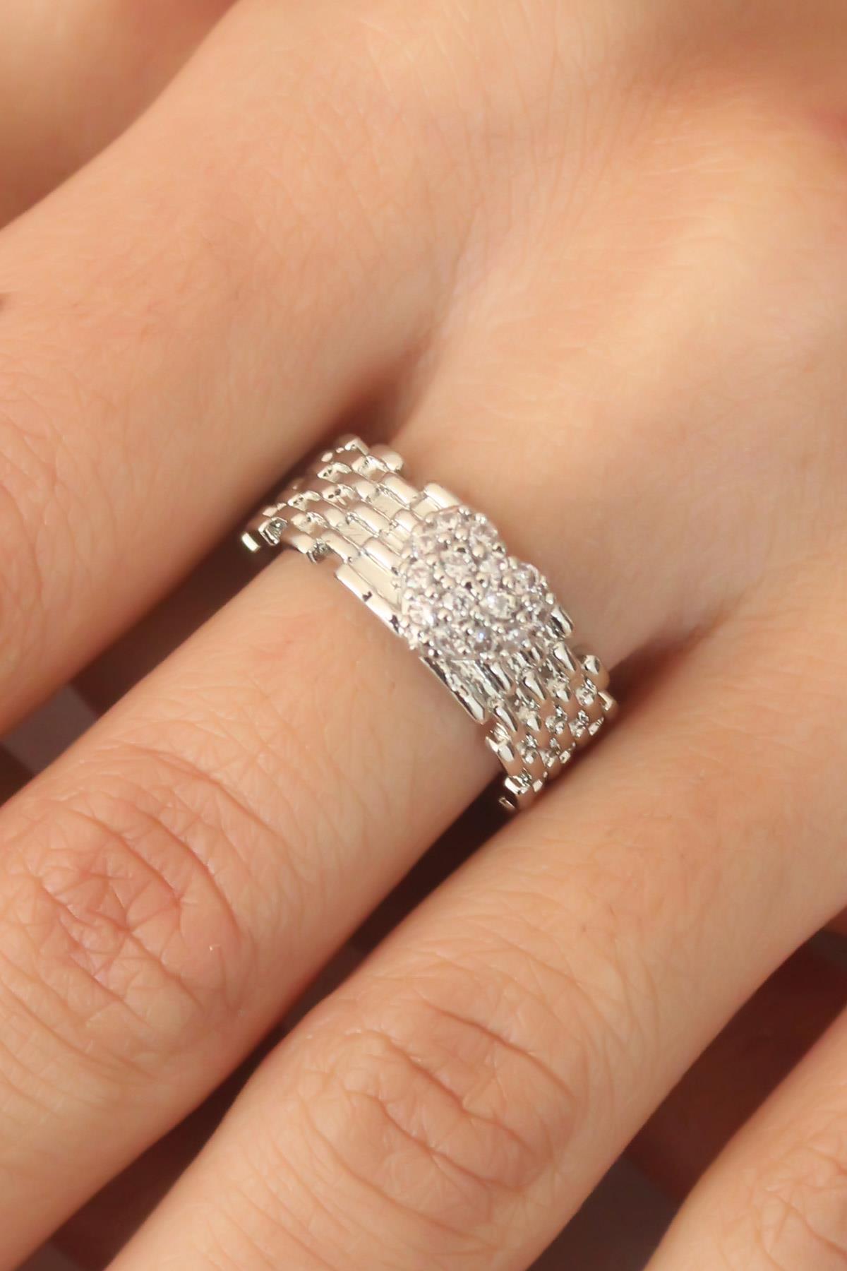 Gümüş Renk Zirkon Taşlı Kalpli Ayarlanabilir Kadın Yüzük