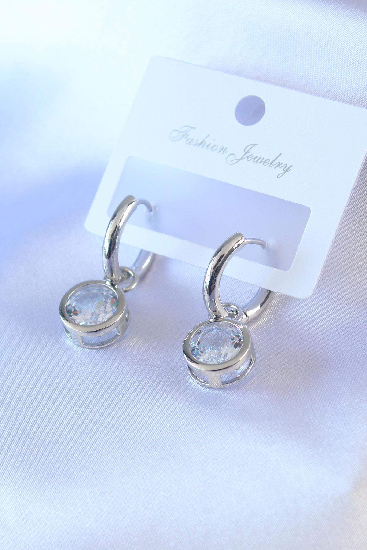 Gümüş Renk Zirkon Taşlı Pirinç Kadın Küpe