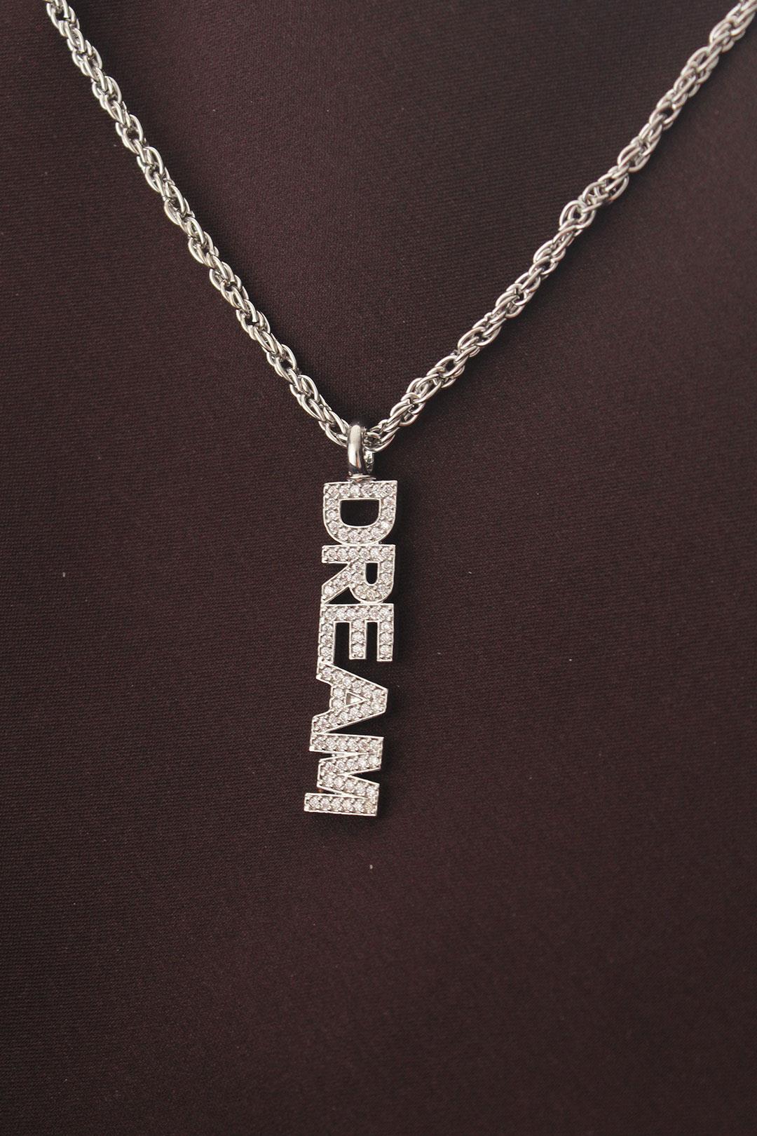 Gümüş Renk Zirkon Taşlı Rüya Yazılı Kolye