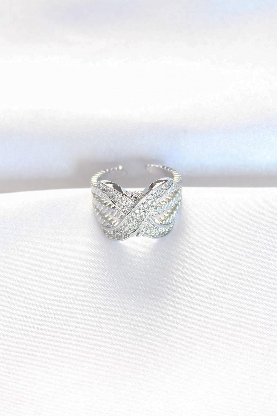 Kalın Zirkon Taşlı Silver Renk Ayarlanabilir X Tasarım Yüzük