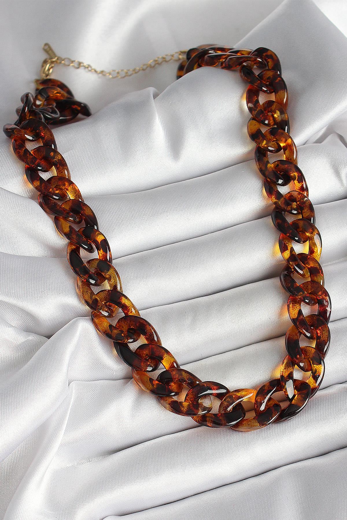 Leopar Desenli Mika Kalın Zincir Kadın Kolye