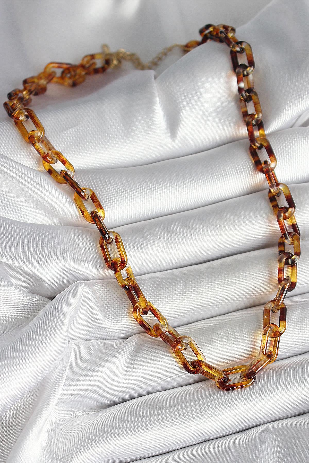 Leopar Desenli Mika Zincir Kadın Kolye
