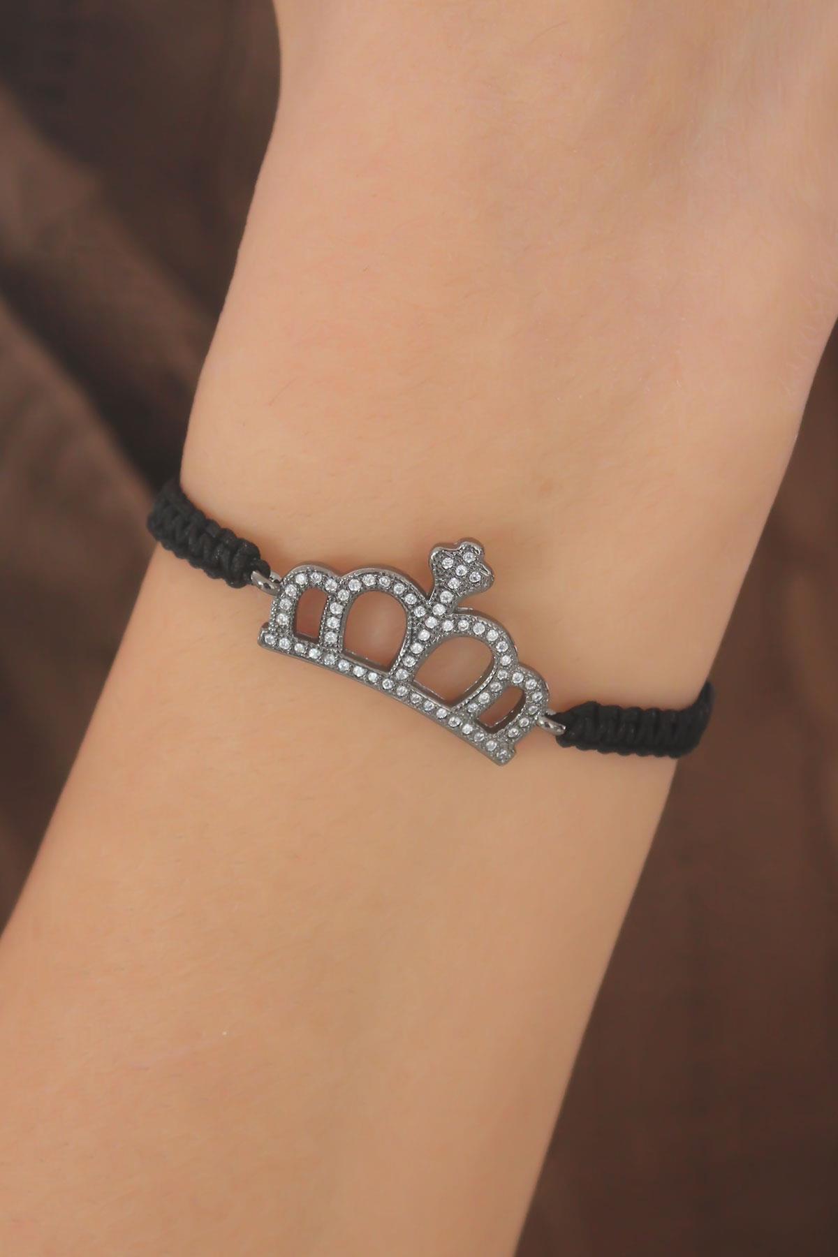 Makrome Füme Renk Taç Figür Kadın Bileklik