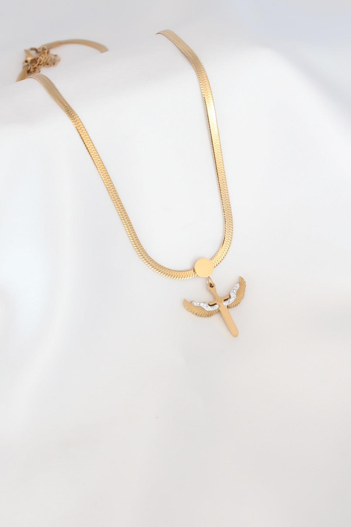 Mikail Figür Zirkon Taş Detay Gold Renk Çelik İtalyan Zincir Kadın Kolye