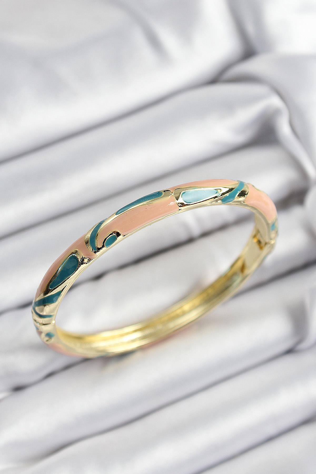 Mineli Pirinç Krem Ve Yeşil Mermer Motifli Gold Renk Kadın Kelepçe