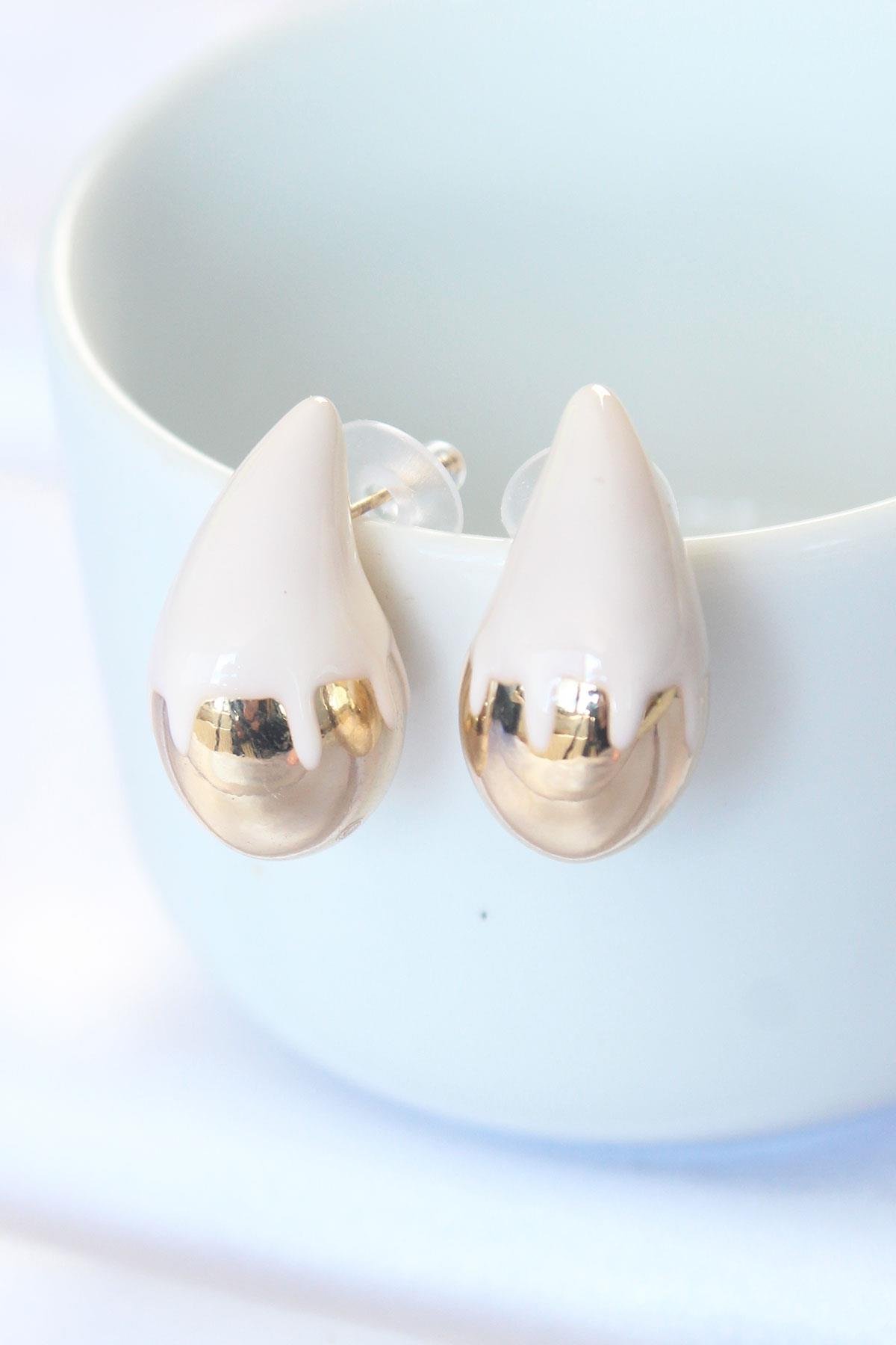 Minimal Beyaz Mineli Çift Renk Damla Küpe