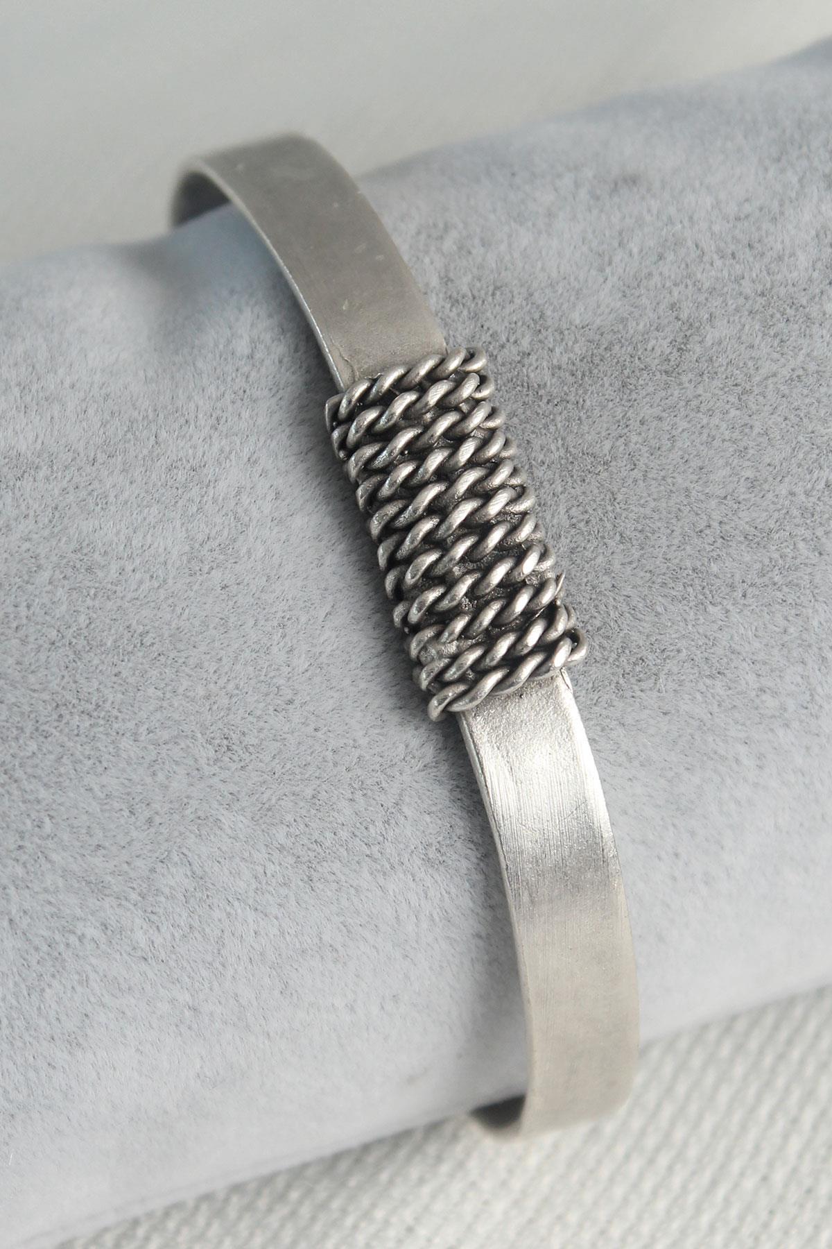 Otantik Gümüş Renk Zincir İşleme Plaka Model Erkek Bileklik
