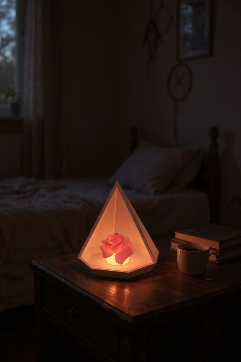 Evinizin her köşesine modern bir dokunuş katacak, 3D yazıcıdan çıkan bu piramit şekilli tepsi ile tanışın. Sadece bir dekor objesi olmaktan çok daha fazlası; o, eşyalarınızı sergilemenin ve mekanınıza ambiyans katmanın sanatsal bir yolu. İster en sevdiğiniz takılarınızı zarifçe sergileyin, ister içine küçük bir mum koyarak yatak odanızda huzurlu bir köşe yaratın. Işığın beyaz iç yüzeylerden yansımasıyla oluşan yumuşak, sıcak parlaklık, akşamlarınıza sihirli bir dokunuş katacak. Minimalist ve sade tasarımı, göz alıcı geometrisiyle birleşerek her ortama kolayca uyum sağlar. Bu özel parça ile alanınızı yeniden keşfedin ve modern zarafeti yaşam alanınıza taşıyın.