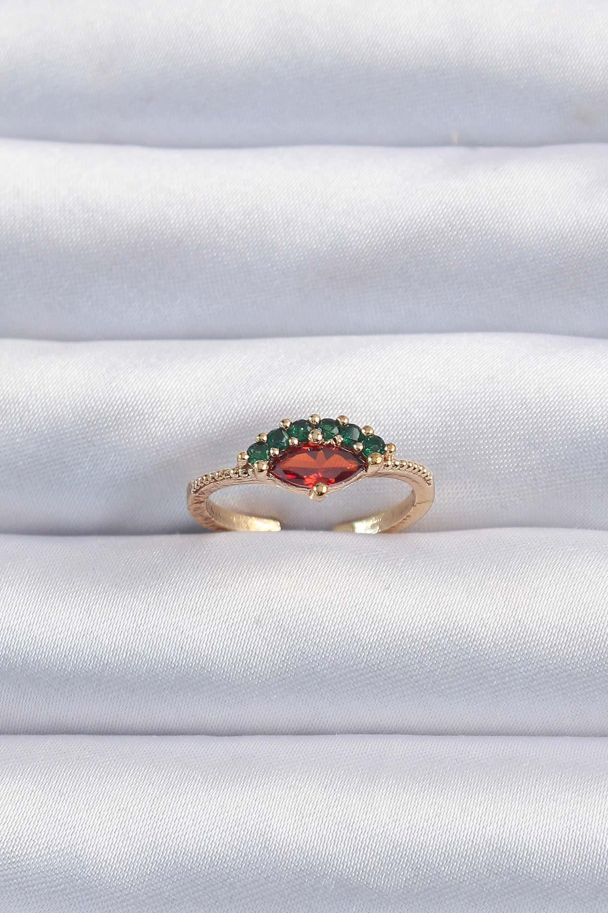 Pirinç Altın Renk Renkli Zirkon Taşlı Ayarlanabilir Karpuz Model Yüzük