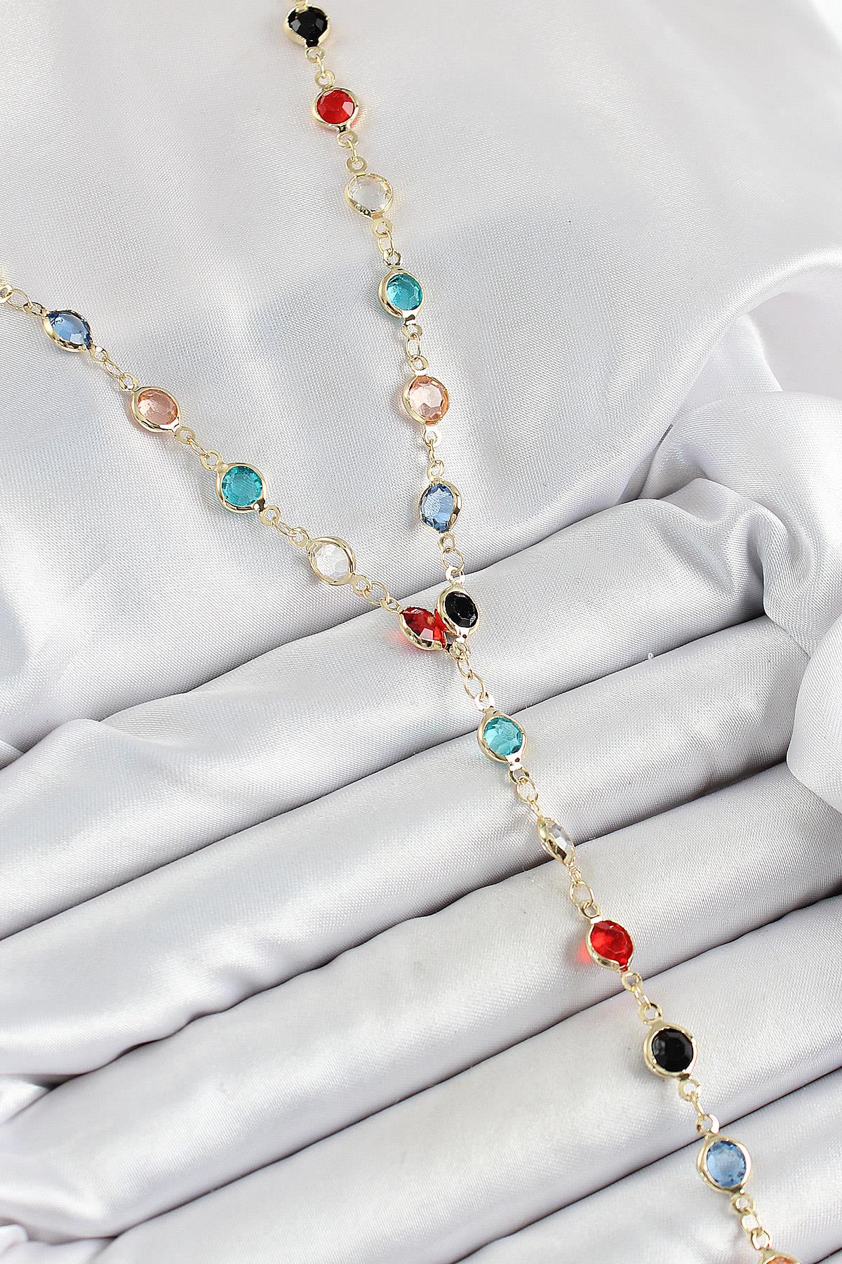 Pirinç Asorti Model Gold Renk Zirkon Taşlı Y Kolye