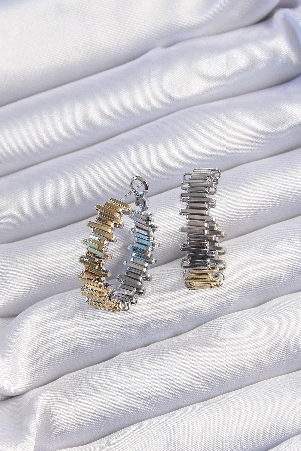 Pirinç Gold Gümüş Renkli Tırtıklı Halka Küpe