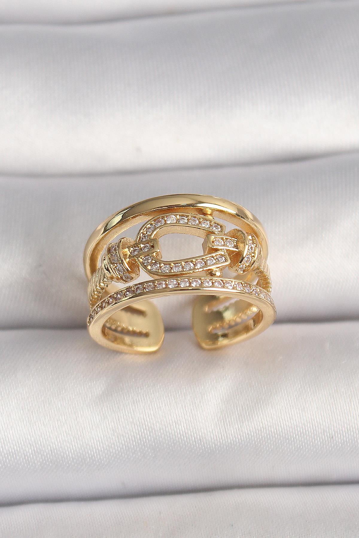 Pirinç Gold Renk Ayarlanabilir Zirkon Taşlı Gemici Düğümü Model Kadın Yüzük