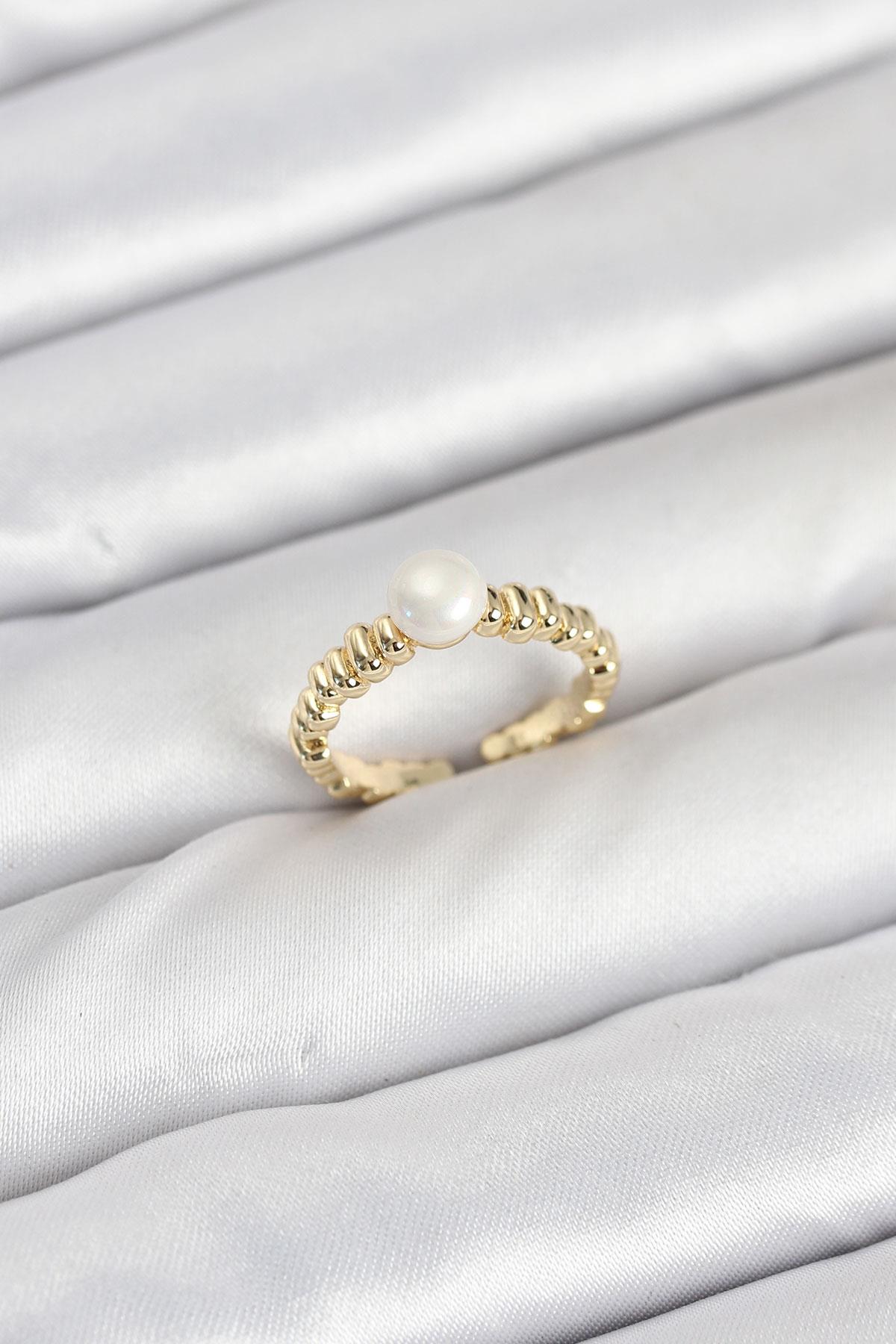Pirinç Gold Renk Göbek İnci Model Kadın Yüzük
