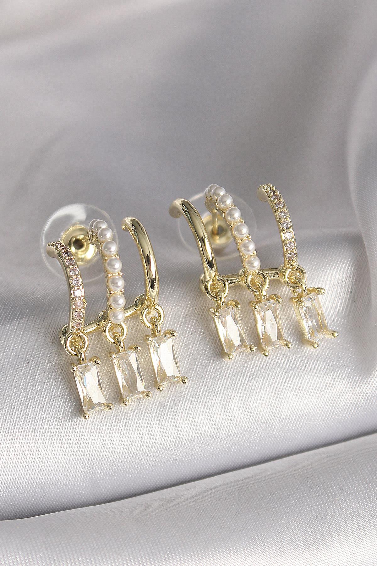 Pirinç Gold Renk İnci Detay Sallantı Zirkon Taşlı Kadın Küpe