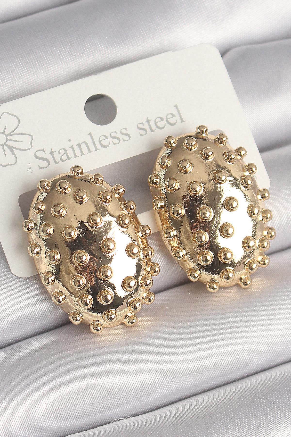 Pirinç Gold Renk İşleme Detaylı Oval Bombe Plaka Model Kadın Küpe