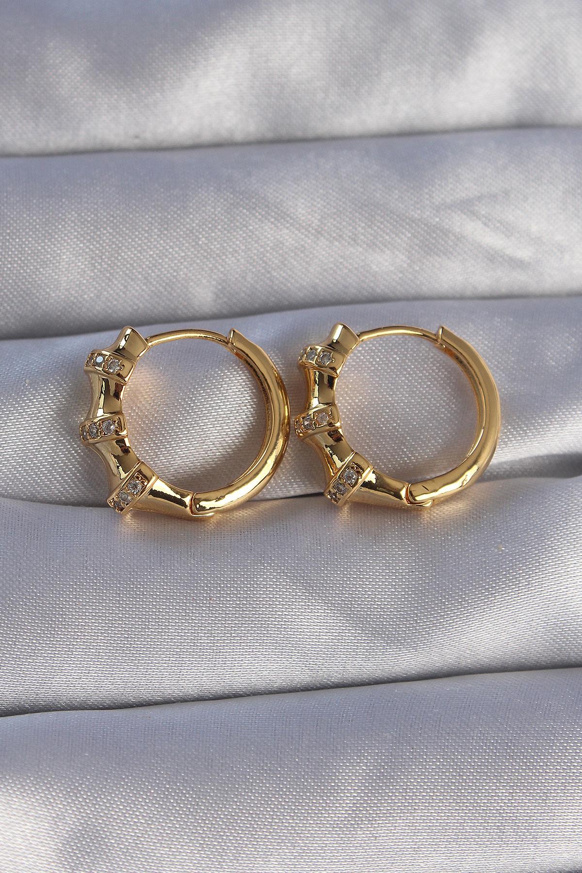Pirinç Gold Renk Kabartmalı Zirkon Taşlı Oval Model Küpe