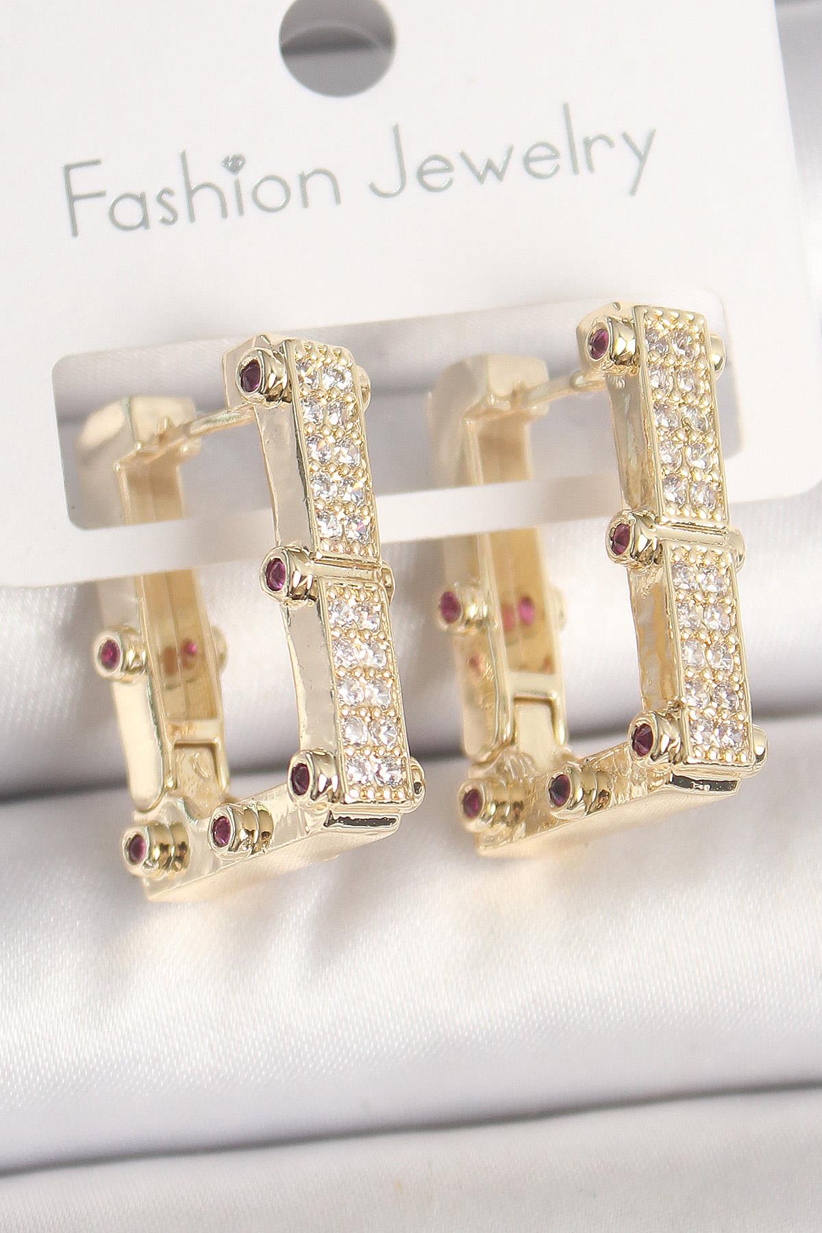 Pirinç Gold Renk Kare Zirkon Taşlı Kadın Küpe