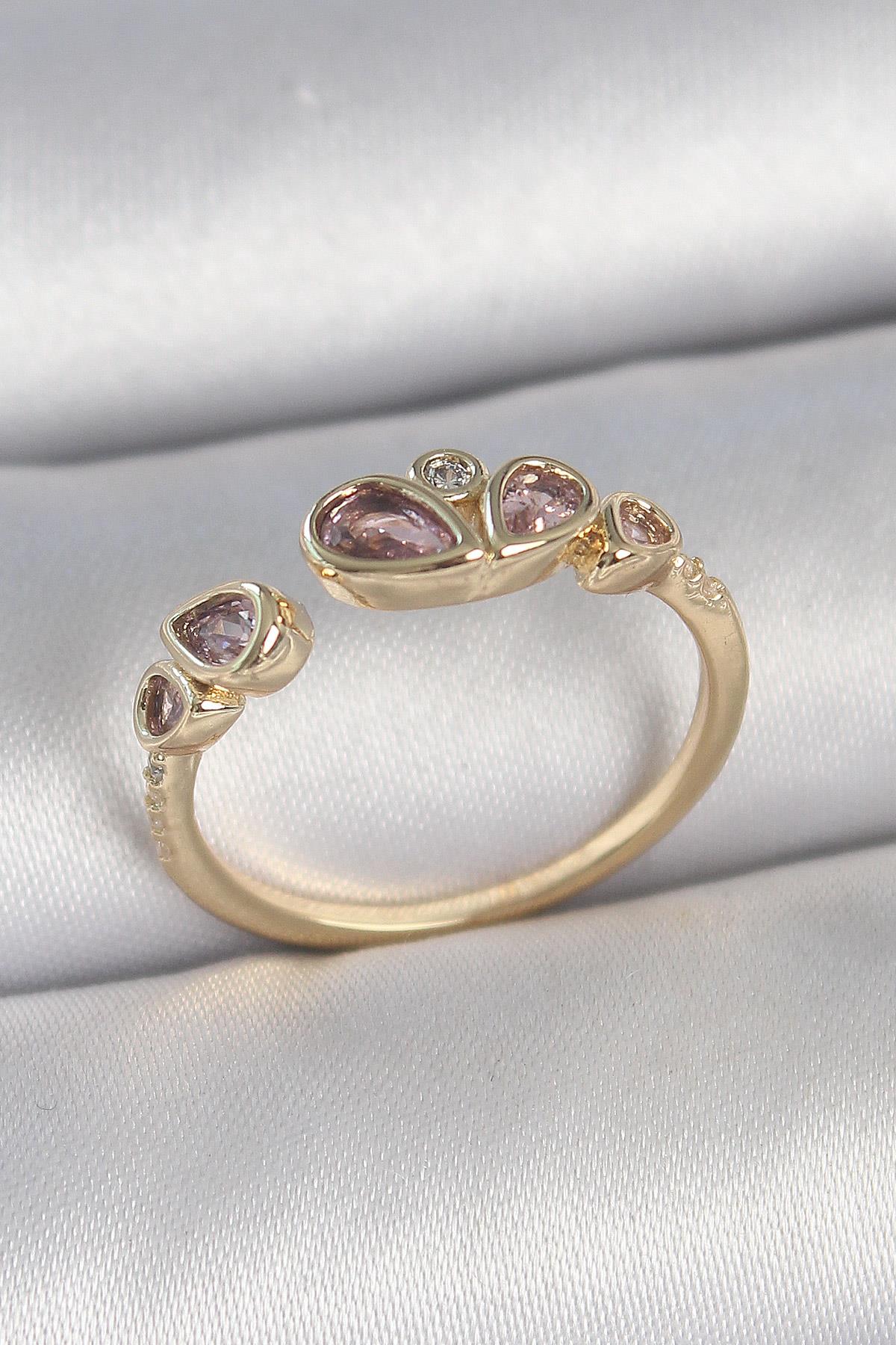 Pirinç Gold Renk Pembe Damla Zirkon Taşlı Ayarlanabilir Kadın Yüzük