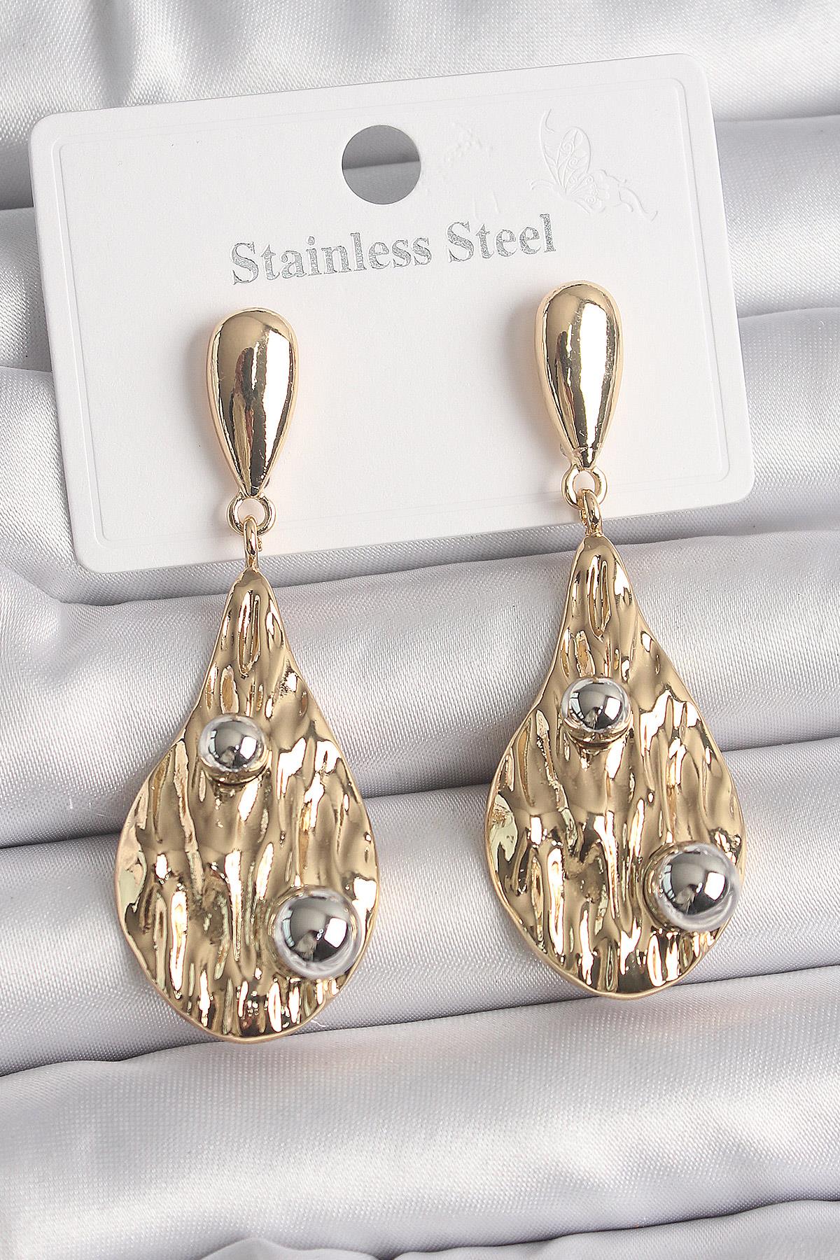 Pirinç Gold Renk Sallantı Damla Model Gümüş Top Detay Kadın Küpe