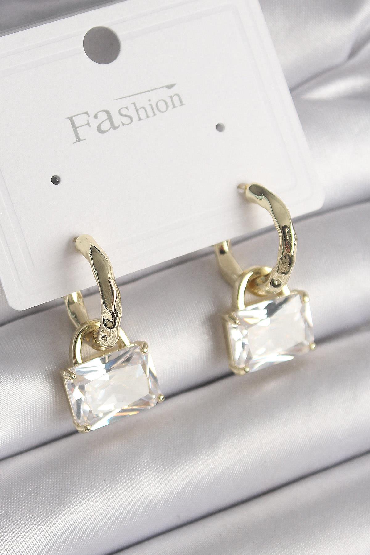 Pirinç Gold Renk Sallantı Zirkon Taşlı Çanta Model Kadın Küpe