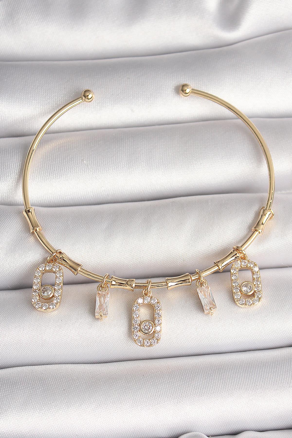 Pirinç Gold Renk Sallantı Zirkon Taşlı Messika Figür Charm Kadın Bileklik