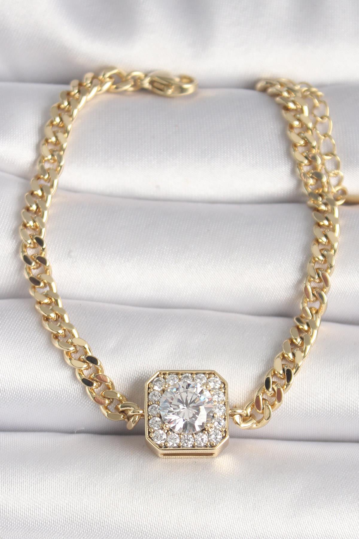 Pirinç Gold Renk Zincir Kare Zirkon Taş Model Xuping VIP Seri Kadın Bileklik