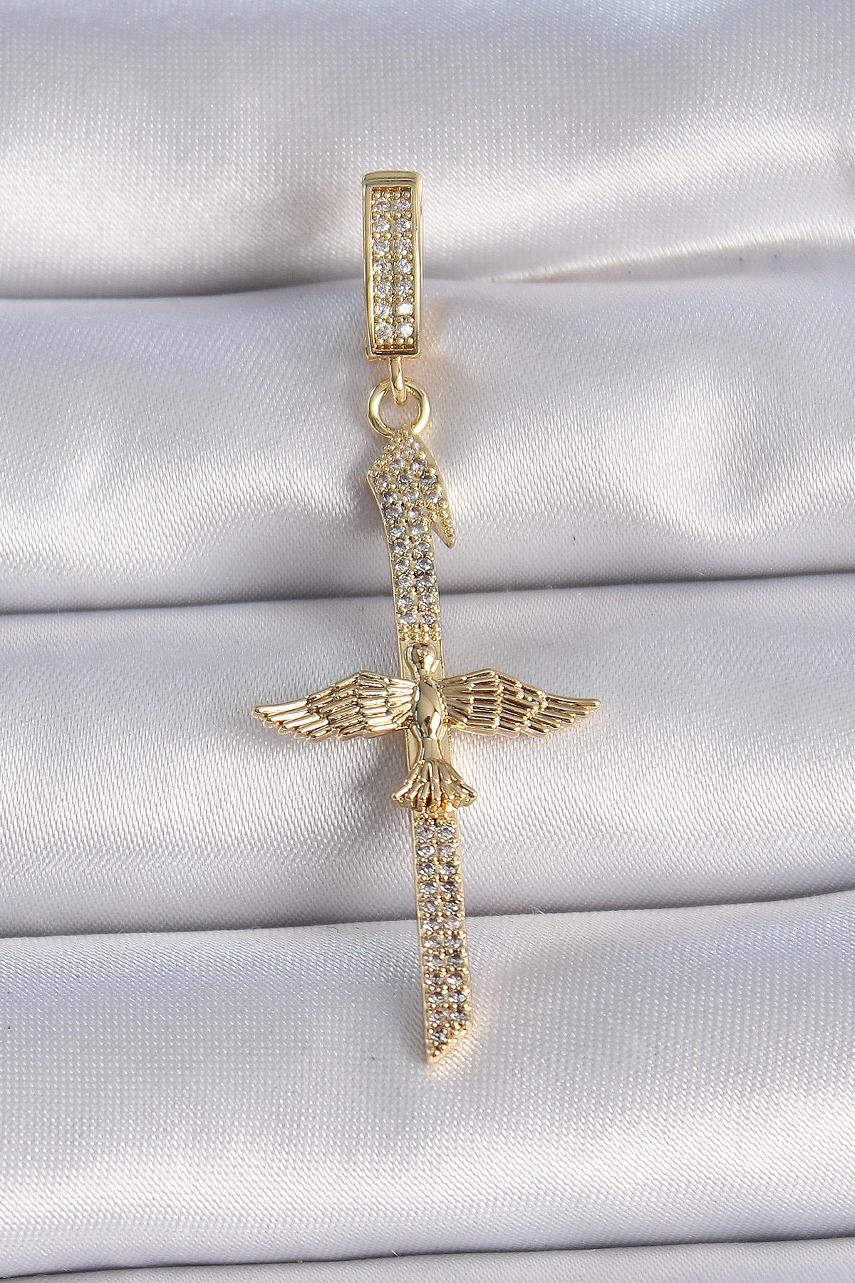 Pirinç Gold Renk Zirkon Taş Detaylı Elif Model Anka Kuşu Figür Ajda Charm